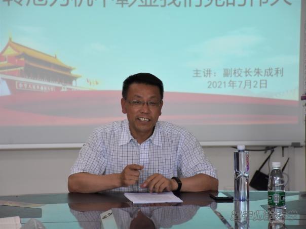 接着,朱校长结合习近平总书记在庆祝中国共产党成立100周年纪念大会上发表的重要讲话内容,进一步明确了习近平总书记重要讲话精神:要不断增强“四个意识”、坚定“四个自信”、做到“两个维护”,立足“两个大局”,心怀“国之大者”,大力弘扬伟大建党精神,在实现第二个百年奋斗目标新的赶考之路上为党和国家教育事业作出新的更大贡献。