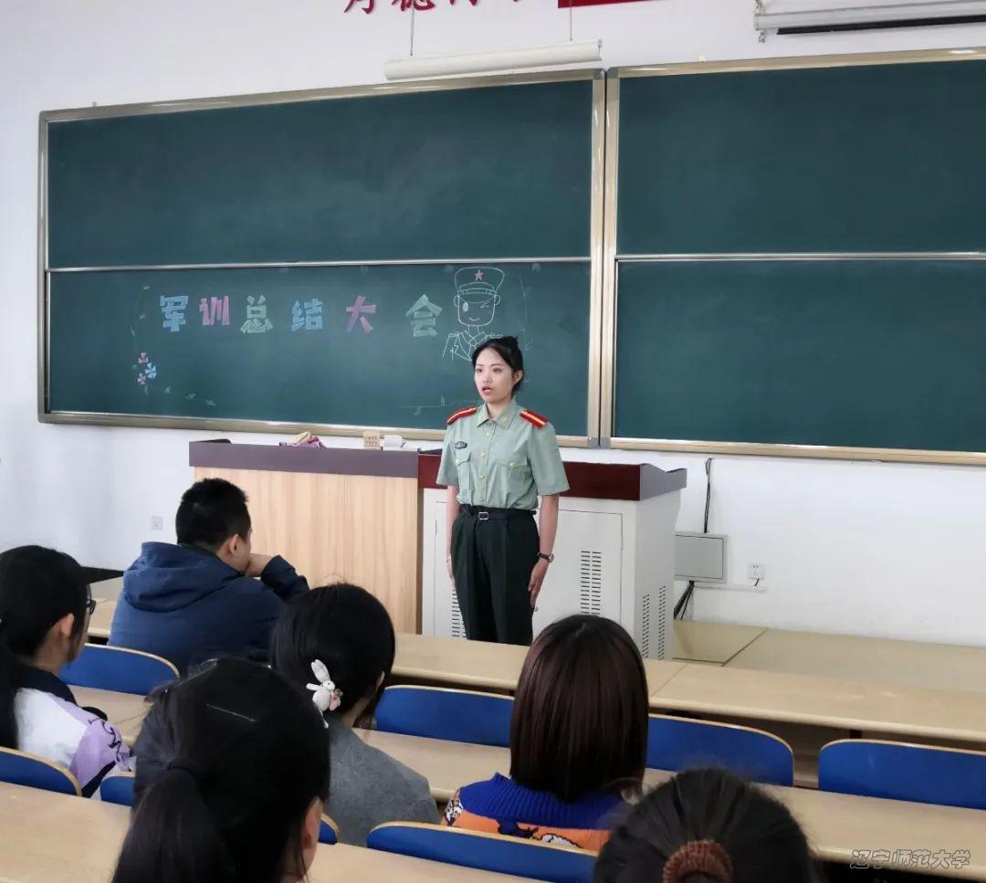 首先要给大家表扬与肯定。训练中,大家的努力和坚持是训练场上最闪耀的那抹光。希望大家以后能够将军训中所学到的谦让、礼貌、还有那份坚持、不放弃运用在生活中与学习上。祝大家以后学习更上一层楼,大学生活健康开心,更愿大家青春不负韶华。