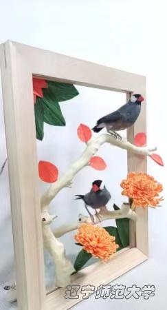 标本选用的动物是虎皮鹦鹉:鹦形目,鹦鹉科,虎皮鹦鹉属。虎皮鹦鹉会和感情好的同伴相互梳毛,“两小无猜”意在表达天真烂漫,表现鹦鹉之前亲昵的神态。两小无猜的友谊是最难得的幸运,值得用一生来珍藏。世人所追求的爱,是心心相印的默契,是两小无猜的情怀,是同甘共苦的相伴,是携手白头的幸福。