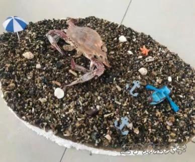 本组标本主要使用了三疣梭子蟹作为主要实验动物。夏日是在看到这种动物时人们的第一反应,阳光沙滩上,一只蟹在悠闲地晒着太阳,在现代的快节奏生活里,这样一种慢节奏也渐渐成为了人们向往的生活状态,本组作品因此立意。