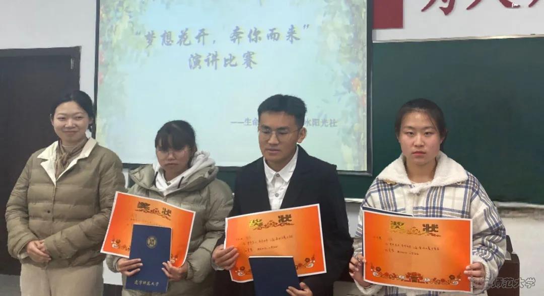 至此,本次演讲比赛圆满结束。相信所有参赛选手在比赛中都收获满满。“梦想花开 奔你而来”,人的一生应当怀揣梦想,并为之拼搏。希望同学们能以高昂的姿态和积极的态度面对生活中的一切问题。生命不息,梦想不灭。